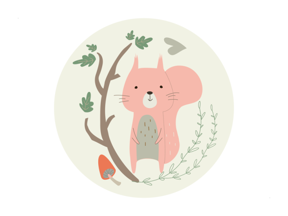 | Breng een schattig en speels accent naar de babykamer met onze muursticker van een eekhoorn in een cirkel, met een boom en een paddenstoel! |