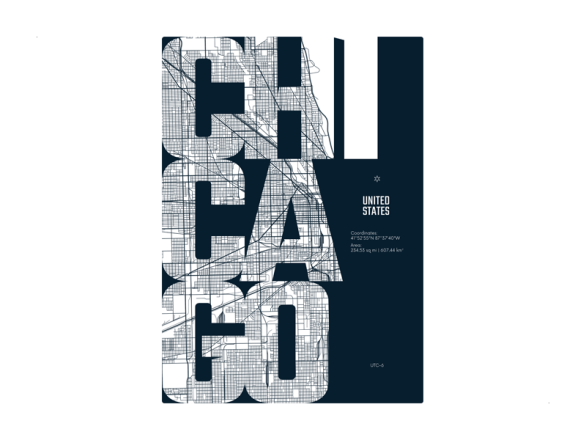 Muursticker Chicago map locatie