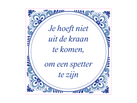 Je hoeft niet uit de kraan te komen, om een spetter te zijn