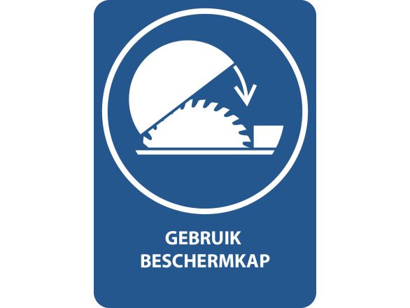 Beschermkap gebruiken om verwondingen door de tafelzaag te voorkomen, met tekst