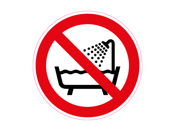 Doormiddel van deze sticker kun je op een eenvoudige manier aanduiden dat dit apparaat niet gebruikt mag worden in de douche, badkuip of net water gevuld reservoir. Dit wordt weergegeven door een rond verbodsteken, waarin het pictogram is afgebeeld.