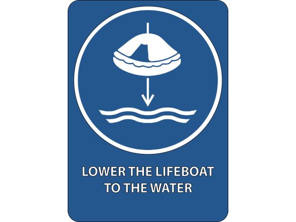 Lower the lifeboat to the water, met tekst