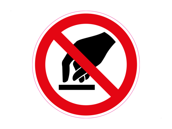 Met deze verbod sticker laat je op een duidelijke manier zien dat je dit voorwerp niet mag aanraken. Dit symbool is weergegeven door een rond rood/wit verbod symbool met hierin een zwart pictogram.