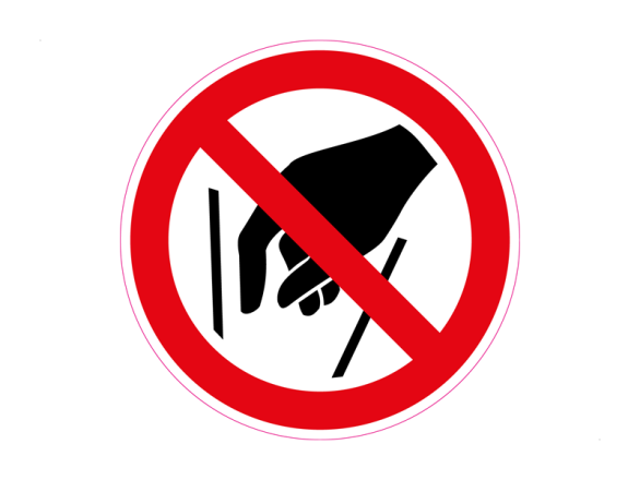 Doormiddel van deze sticker maak je duidelijk dat er een verbod is van niet naar binnen reiken. Deze sticker heeft een ronde vorm, met een rood verbodsteken waarin het pictogram in het zwart is afgebeeld.