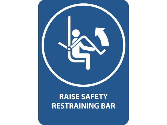 Raise safety restraing bar on ski chairlift, met tekst