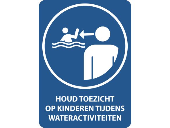 Toezicht houden op kinderen tijdens wateractiviteiten, met tekst