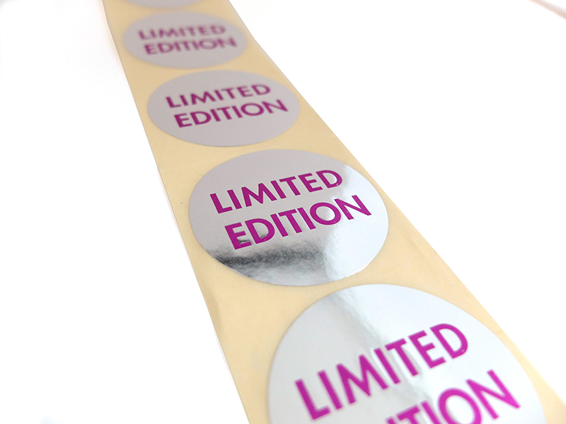 Het verschil tussen foliedruk en full color etiketten op rol is de productiewijze. Bij de productie van foliedruk etiketten en stickers op rol wordt er per losse kleur een cliche gemaakt. Een cliche is een soort stansvorm van de betreffende vorm of kleur welke op het etiket gedrukt dient te worden. Daarna wordt de foliekleur door middel van het cliche op het materiaal geperst, waardoor er druk ontstaat. Bij Stickerwinkel.com hebben we een uitgebreid aanbod aan foliekleuren, maar het blijft een beperking wanneer we bijvoorbeeld een PMS kleur moeten benaderen of een foto moeten bedrukken.