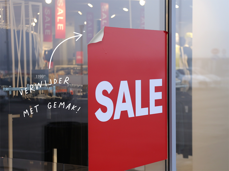 Verwijderbare raamstickers zijn ideaal voor tijdelijke promoties, seizoensdecoratie of evenementen: eenvoudig aan de buitenzijde te plakken en tot 6 maanden te gebruiken, zonder lijmresten bij verwijdering.